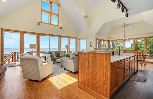 Enjoy stunning sunsets from this 5 star home at water's edge. Relax with the amazing water view from the north side of the island. Every bedroom is a suite, to ensure all of the adults have the right amount of privacy and a quiet place to stow away with a book. The dining area is big enough to accommodate large family dinners and the kitchen has been newly remodeled and upgraded! With a breakfast bar and wide open living area, you can be sure to have lasting family moments together. Have your cameras ready to capture the changing tides, wildlife and those crazy family moments that are sure to happen in this lovely home. Grandview offers every amenity from a screened porch, an open deck, long pier with a dock, ceiling fans throughout, wireless internet and much much more! This home also includes the use of 2 bicycles and 2 kayaks.