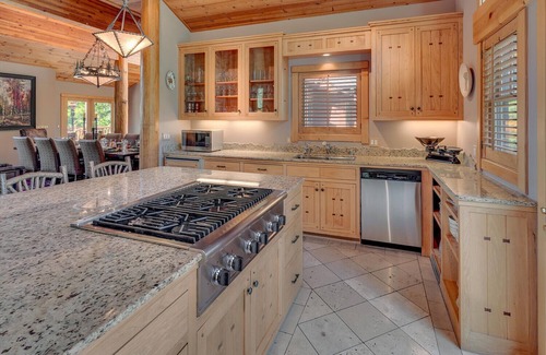 Granite Chief Lodge is an impressive, mountain home nestled on a peaceful cul-de-sac, in a private subdivison. The location is truly spectacular, sitting just up the road from Palisades Tahoe in Olympic Valley, a world renown ski area, and backing up to beautiful, tree-lined views. For those itching to get the first tracks in fresh powder each morning, Granite Chief Lodge delivers. No need to worry about traffic lines, you are practically, already there. The Mountaineer shuttle makes it easy to access Olympic Valley and Alpine Meadows without a car by offering free, on-demand rides anywhere within the two valleys. (The two separate mountains, formerly Squaw Valley and Alpine Meadows, now go by the unified name of Palisades Tahoe and a day's lift ticket offers access to both resorts via the Base to Base Gondola, the first of its kind in North America, connecting the two base areas of the individual mountains. Guests will now be able to enjoy 6,000 acres of some of the continent’s most iconic ski and snowboard terrain.) A few minutes down the road is Everline Resort and Spa with delectable restaurants, ice skating and luxury spa services, as well as a championship golf course, meadows for snowshoeing, XC skiing, and sledding. The activities also abound at the Village at Palisades Tahoe, so plan on listening to some concerts, strolling through festivals and taking an aerial tram ride for hiking and biking adventures.