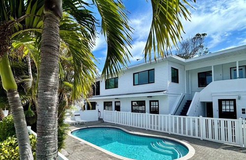 This charming property is a short walk (100 steps) to the beach, shopping, amenities and restaurants. It includes a shared outdoor seated patio with loungers, an outdoor grill and heated pool.