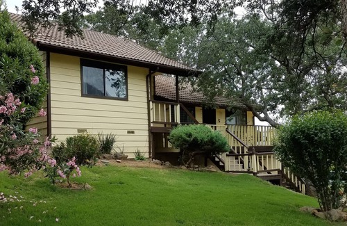 Even though this home is located less than a half mile from the highway, it has a sense of wilderness to it. We find it tranquilizing to sit out on the large elevated deck with view of the valley to the west, the sounds and sights of the river below and the Sierra Nevada Mountains to the East. The evenings might be best however, with sunsets over the valley and the stars against the black night sky.