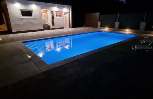 A weekend house in a very quiet place. Surrounded by greenery and beautiful nature. Next to the weekend house is a large pool with a view of the mountains and nature. Close to the national park Una, eco village Natura Art, and other tourist restaurants.