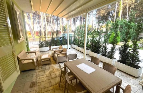 Nestled inside beautiful pine trees this exclusive beach residence offers a perfect blend of comfort and tranquility. As you step inside, you're greeted by a tastefully designed interior with modern and elegant furnishing. The kitchen, features all necessary appliances and next to it is the dining area that makes every meal feel like home. The living room offers a cozy yet sophisticated ambiance, perfect for relaxing after a day at the beach. Each bedroom is designed for comfort and privacy. You can step outside and relax at the outdoor living space to enjoy a meal or a drink at the comfort seating area surrounded by the green. The residence is located inside a private complex with 24 hours security. The beach is located only 100m away.