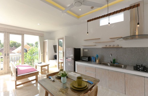 1 Bedroom Green Studio Apartment Third Floor is tastefully decorated with paintings and antiques, that makes you comfortable staying there, strategically located in center of sanur area, 1 Bedroom Green Studio apartment a Six-Apartment, complex with the total building size of 265 ㎡, with room size 42㎡.