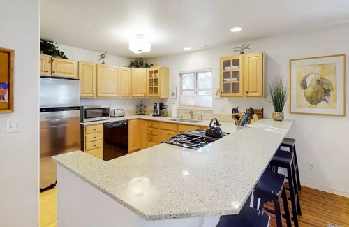 Come and enjoy your stay in our modern, comfortably designed 2 bed/2 bath with loft townhome right by the Boise river with a full eat-in-kitchen, wifi, television, laundry and attached garage.