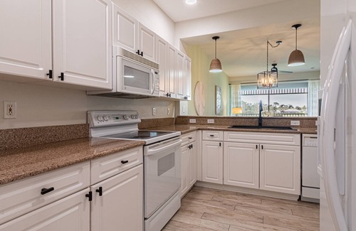 The open & bright kitchen w/granite counter tops and built in microwave is well appointed with cookware and utensils for your culinary endeavors. However, Sam Snead's Tavern is conveniently located within Lely Resort for your dining pleasure as well. Great spot to relax and unwind following a day on one of the two award winning golf courses.