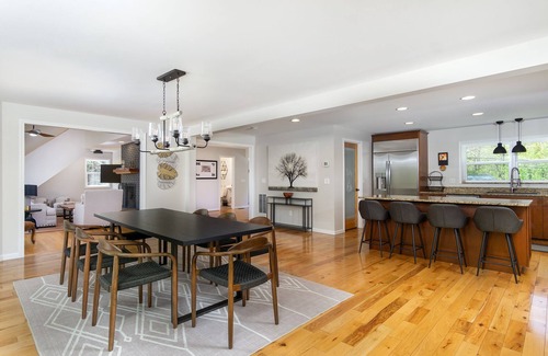 Nestled within a scenic preserve of over 600 acres, charm abounds in this spacious, sun-filled mountain lodge. Located 5 minutes from downtown Black Mountain and 15 minutes from Asheville, you'll enjoy the privacy of mature trees and foliage with long-range, mountain views and a convenient location. From the moment you place your suitcase down in the mudroom, you'll be greeted by impeccable decor and thoughtful furnishings. The chef in your group will marvel at the stainless steel appliances, gas range, and abundant counter space. Preparing meals at your mountain oasis will be a breeze in this well-equipped kitchen. Enjoy warm French Toast at the breakfast bar or sip your morning coffee in the fully-enclosed sunroom with ample seating. The spacious deck, complete with an outdoor sofa, couples' rocking chair, and fire table, was built with memory-making in mind.