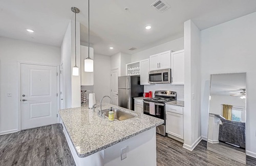 Relax and unwind in comfort! Apartment features all the amenities needed for your stay. Enjoy FREE UNLIMITED WiFi, dedicated workspace, 55" Smart TV, In Unit laundry and balcony overlooking a beautiful lake. Guest will also have access to the pool area, gym and FREE parking.