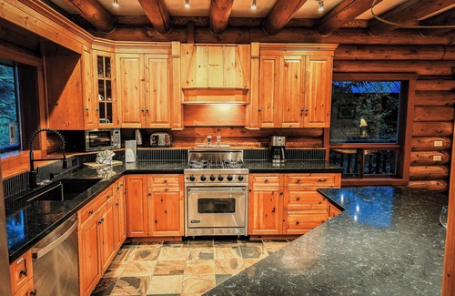 The open concept chef’s kitchen is fully equipped with all of the major appliances, including a gas stove, pots, pans, and essentials you will need to keep your crew fueled up. You won’t need a single thing in the kitchen other than your groceries. It is fully stocked with coffee, tea, sugar, and large assortment of spices, oil, and other cooking basics for your convenience. We love to cook! which means our kitchen is well stocked with everything you'll need for preparation of a gourmet meal.