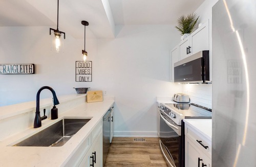 You'll find similar new upgrades in the bathrooms, one of which includes a garden tub for peaceful soaks. The main bedroom features an en suite bathroom with a standalone shower. The private washer/dryer makes it so you can pack light. Pull up a spot in front of the gas fireplace and make plans!