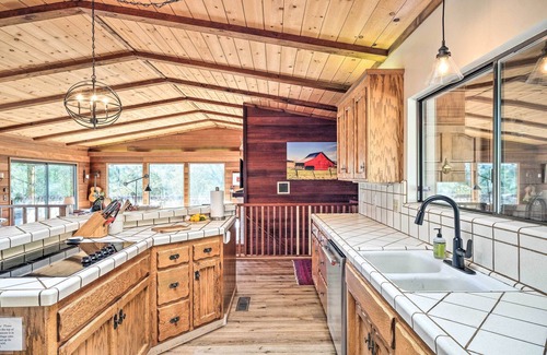 This 4-bed, 3-bath cabin in Groveland is the ideal destination for families, friends, and couples. This vacation rental has a fully equipped kitchen, a large backyard, and an outdoor kitchen with a gas grill for those who enjoy cooking in the open air. There is a wood-burning fireplace which is ideal for those cozy winter nights. Visit Yosemite National Park in the summer then end your day by the fire pit while the kids play a game of pool. Book now and enjoy all that this cabin has to offer!
