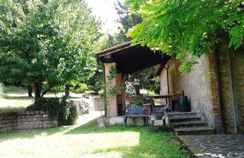 (Text automatically translated) The house is set in a complex of two houses in stone, restored to homes with porches and big courtyard garden surrounding, overlooking the Tiber valley at the confluence with the Black, with easy reach of shops at 1 km in the medieval village of Guadamello and hiking opportunities. The 4-hectare estate with vineyards, olive groves and fruit trees, suggests the medieval town of Orte. E 'characterized by great peace and privacy while having held similar neighbors. Do not miss the sunset! The decor is very nice style appropriate to campagna.Il porch is a natural continuity with the kitchen area and is also equipped with barbecue. The master bedroom is located on a feature and a large loft area. For our guests there will be a free liter of oil produced in our olive grove.