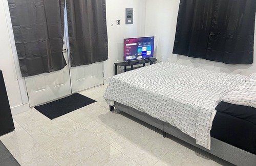 Come and enjoy your stay in this spacious , very quiet and comfortable 1 Bedroom Studio ,1 full newly built bathroom. 1 Queen bed(Sleeps 2) + 1 Sofa bed( Sleeps 1). You will have absolutely zero noice from outside except the nature. Peaceful, ample parking, newly renovated, Wifi, Smart TV, Coffee maker, microwave,fridge. It’s equipped with central speaker system so you can enjoy movies or song with theatre like experience. You will have whole place for yourself with completely private and separate entry. You will have your own privacy ,not shared with anyone.