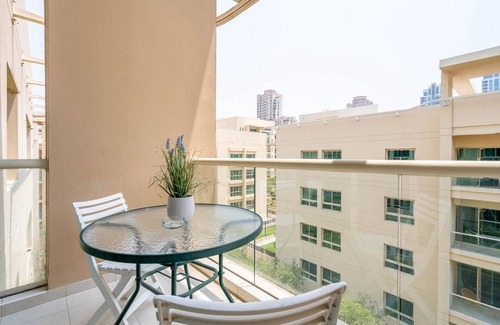 Situated on the 4th floor, our flat is professionally prepared with all the necessities for a comfortable stay. Relax and unwind in the bring and cosy living room, fitted with a sofa, TV and access to private balcony to enjoy that Dubai sun!