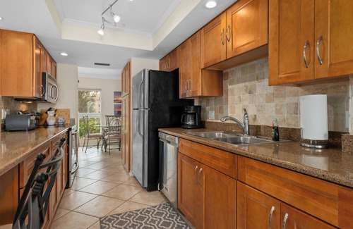 This condo has been renovated with a state of the art kitchen -- stainless steel appliances and granite counter tops. Bathrooms boast over sized showers and custom tile work. A sleeper sofa in the den accommodates extra guest. Flat screen LCD TVs are located in the living room and both bedrooms. High speed internet, air conditioned, handicapped access. In unit washer and dryer for your convenience.