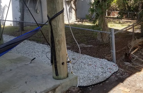No damage from hurricane helene. This stilt home has amazing views from the front balcony of the Gulf. While off the back deck you enjoy viewing the mangrove trees and intracoastal waterway. Walk through your own nature reserve to the private dock on the intracoastal.