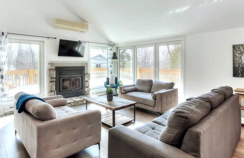 Charming chalet located in front of Lac Nominingue! Ideal site for outdoor activities and swimming in summer, as you will have access to a private beach. Come escape into nature, enjoy the great outdoors and relax. View of the lake and the surrounding forest, what more could you ask for? You will be enchanted by this unique decor! This bright chalet includes a large open area on the ground floor. It includes the living room with fireplace, the dining room and the kitchen with island. You'll have plenty of space to cook and relax by the fireplace with your loved ones. The living room and the dining room give access to a large terrace, perfect for enjoying good meals during the beautiful summer evenings. Note the view, in the winter season. Access to the lake is right in front! Two bedrooms complete the floor. In the basement, you will find a family room, two other bedrooms, a bathroom and a washer-dryer area. You will have plenty of time to enjoy this place or share it with your family or friends. 8 people can easily stay in this chalet! You will have access to the entire chalet, the land and the private beach located across the street, 1 minute away! You will be a few minutes by car from the Tradition market (SAQ). You will also find a snack bar, a café and a few restaurants nearby. You will have to travel by car to reach the main shops and attractions in the region. The circumference of Lac Nominingue is 50 km! Nearby attractions and activities: - Le Renouveau Ecological Park - Nominingue lake municipal beach - Nominingue Golf Club and Hotel - Red Hare Route - Parc-des-Grandes-Baies cross-country ski center - Mount Bondy - Papineau-Labelle Wildlife Reserve - Le P'tit train du Nord (hiking, cycling, etc.) - Dog sledding adventure in Mont-Tremblant - Guided excursion and zipline in Mont-Tremblant You will be 48 min. Mont Blanc (skiing) and Mont-Tremblant (skiing and activities).