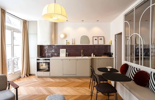 Stay in this beautiful apartment, located in the heart of Paris near the famous Grand Boulevards, surrounded by the elegance of the Palais Brongniart, the Palais Royal and the illuminated magic of the City of Lights.