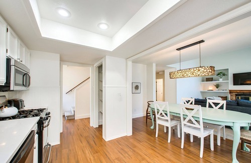 Located in the best part of Boise's North End neighborhood! Across from local favorite, Elm Grove Park, (awesome shade trees, playground & tennis courts) and blocks away from the quaint neighborhood business district Hyde Park. This townhome feels very spacious with an open floor plan with 2 story vaulted ceiling in the living room, bedroom with queen bed and bath on the main level, and two large bedrooms (king bed in loft and queen bed and bunk bed in the 2nd bedroom), bathroom and laundry room on the second level. Kitchen is fully equipped for making meals at home or use the gas grill on the porch to BBQ. Perfect family retreat!