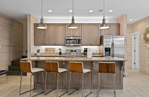 • Fully equipped kitchen with stainless steel appliances, granite countertops, and everything you need to cook at home.