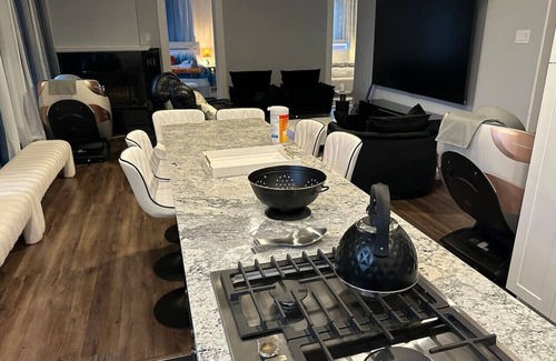 Enjoy top-brand king mattresses, smart TVs in every bedroom, a fully stocked kitchen (yes, even spices), a 100-inch TV, and a full-body massage chair to melt away your stress.