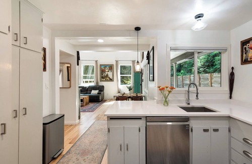 This charming retreat is nestled along Hulbert Creek in the redwoods of Guerneville, California. This 3-bedroom, 3-bathroom home offers over 1,300 square feet of cozy living space, perfect for families or groups seeking tranquility. The property boasts vaulted ceilings, a spacious deck, and a fenced yard, blending rustic charm with modern amenities. Ideal for nature lovers, it's surrounded by lush woods and close to local attractions.