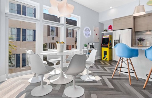 Welcome to a remarkable three-story residence in Park Circle! Featuring three large, professionally designed, colorful bedrooms, each with its ensuite bathroom, it offers comfort & privacy. With five Smart TVs, a 110-inch movie screen, Pacman Arcade, Ping Pong Table, Ring Toss, Grill & other fun games, entertainment abounds. Relax on porches, take in views from the porch swing or wraparound windows, & enjoy a green space for pets & kids. A gourmet market next door serves delightful food & drinks.