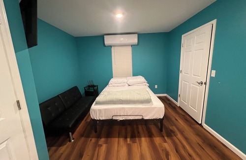 Welcome to this brilliant studio retreat in Royal! Make yourself at home in this 1-bedroom Royal retreat featuring a cozy queen bed, AC, heating, and WiFi. The bathroom includes a refreshing shower and a luxurious bidet. Kitchen Includes most important cooking staff. We're happy to assist with any questions while you stay at our studio.
