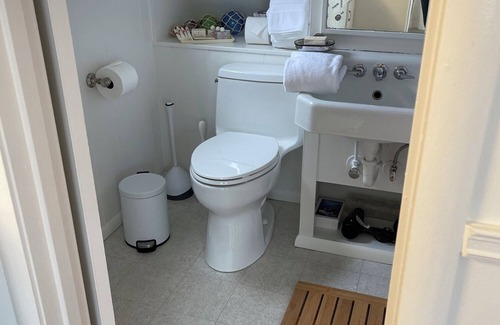 Trinity Alps - Studio-Style Suite with Panoramic Bay Views - Accessed via a private staircase, the TrinityAlps Room is a bright and spacious studio featuring a king-size bed with 100% organic cotton sheets, private bathroom with luxury towels and a tub/shower combo, club chairs, and a café table for two. The kitchenette includes dishware, a microwave, mini-fridge, and coffee/tea service. Suitable for small families (crib not provided). Enjoy breakfast delivered to your room each morning.