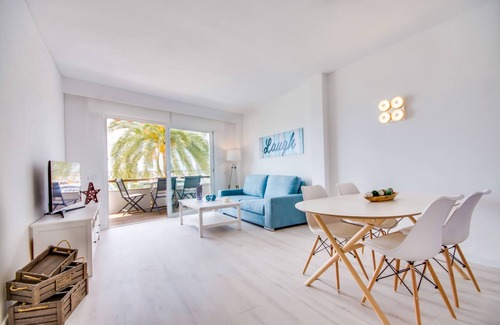 This cozy holiday apartment in Puerto de Alcudia is perfect for up to 4 guests and just 200 meters from the white sands of Alcudia Beach. Located right by the harbor, it offers stunning sea views from the private terrace—an ideal spot for alfresco dining or enjoying the sea breeze with a morning coffee. The interior is thoughtfully furnished for a relaxing stay, featuring a bright living-dining room, a fully equipped kitchen, and two bedrooms—one with a double bed, the other with two singles. A full bathroom with a shower and amenities like Wi-Fi, Smart TV, and air conditioning complete the comfort. With restaurants, shops, and the beach promenade right outside your door, this apartment is perfect for a car-free holiday. Explore the charming old town of Alcudia, just minutes away, and enjoy the weekly market. It's the ideal base for a relaxing Mallorca escape.