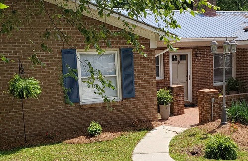 This hidden treasure is a one story brick house at the end of a long private driveway. It offers plenty of parking, 3 bedrooms and 3.5 baths. The living room has a mounted 32" flat screen television with cable and an open view of the lake. The attached garage houses a ping-pong table, extra refrigerator and plush lounging chairs when a break from the sun is needed. The small sunroom leads to a covered brick patio with a picnic table and extends to an uncovered grilling area with a charcoal grill and 2 more picnic tables. Enjoy the ample beach area and newly refurbished private pier during your visit.