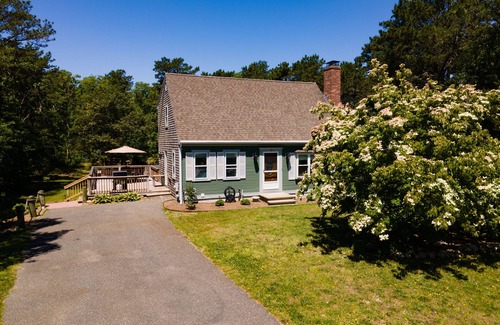 Casa de Cod is conveniently located a five-minute drive from Route 6 in Harwich. The home is on a safe and peaceful 7-house cul-de-sac comprised of mostly year-round homes. You will know you have arrived when you see the basketball hoop in the front yard (basketball provided).