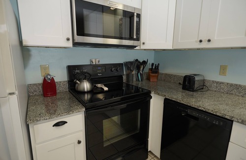 From the updated kitchen and living room to the master bedroom, you’ll enjoy stunning vistas of the Atlantic. Step outside to the private covered deck, perfect for sipping your morning coffee and watching the waves roll in. The kitchen was completely renovated in 2018, featuring granite counters, new cabinets, and all the tools you need for a home-cooked meal—including a microwave, coffee maker, grinder, blender, and more.