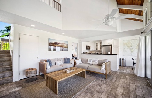 This two bedroom, two bathroom property is fully furnished with fantastic ocean and golf course views. Includes full access to resort swimming pool, hot tub, and sun deck. Amenities include granite slab kitchen counter-tops, high quality Downsview cabinets with glass doors, plantation Shutters in living room and dining room, and vaulted ceilings. Spacious upstairs bedrooms offer beautiful tropical and mountain views. The primary bedroom has one king bed, while the second bedroom has two double beds.