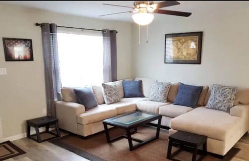 Enjoy your stay in this single story, 3 bedroom home w/ 2 baths. This house is perfect as a getaway among friends or families. Kitchen is furnished with coffee, microwave, pots & pans for basic cooking. Public park with pond which you can fish along the pier and enjoy a picnic under the sheltered picnic area. It is just a 5 minute walk from the house. Less than 3 miles from Walmart, restaurants and downtown shopping.