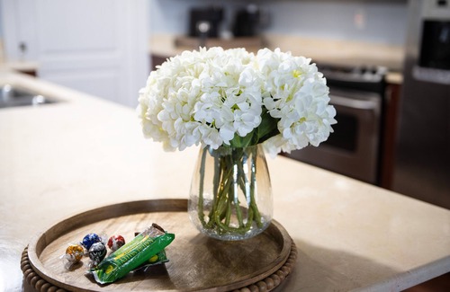 The kitchen is a culinary haven, equipped with everything you need to unleash your inner chef. An airfryer, rice cooker, crockpot, and Nutribullet stand ready to assist your foodie endeavors. Whether you're whipping up a meal from scratch or reheating leftovers, you'll find all the tools you need. And for coffee enthusiasts, a selection of top-tier machines awaits. From the precision of the Nespresso maker to the convenience of the Keurig and the artistry of the espresso machine, your coffee cravings are met with excellence. An electric kettle ensures you can prepare tea with ease. The thoughtful details extend to sweeteners, creamers, and even Torani chocolate and caramel sauces to elevate your coffee experience.