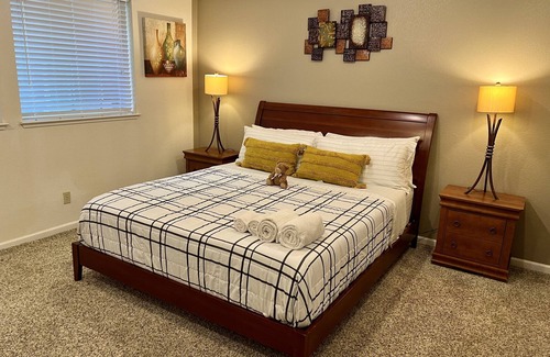 Experience Folsom and Sacramento staying in this beautiful and large 5 bedroom 3 bath home. Remodelled with new appliances, HVAC and fully furnished to make your stay cozy and comfortable. Strategically lcoated. An hour away from Lake Tahoe, 2 hours from SFO and Bay Area, 3 hrs from Yosemite National park, etc.