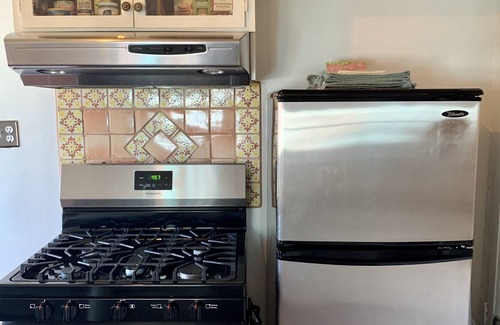 This cozy casita features a welcoming floor plan with a living room, kitchen, bedroom, bathroom, and a laundry closet. The home’s authentic character shines through with wood and Saltillo tile floors, and you’ll love relaxing in your private walled courtyard. The kitchen is well-equipped, and everything feels fresh with new paint, lighting, and a washer/dryer.