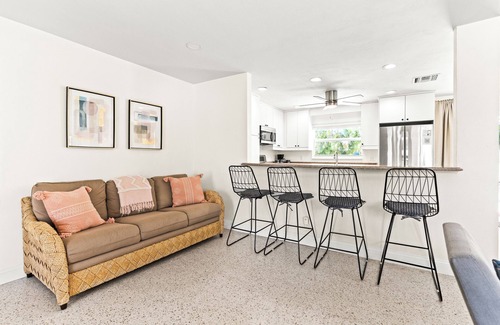 Tropical Oasis found. Comforting Boho-themed interior design compliments the open floor plan and amazing pool deck. Outside relax and lounge on the patio, bbq your next meal, or take a refreshing dip in the pool. Or walk to the sandy white beach trailing the beach wagon, chairs, and umbrella provided!