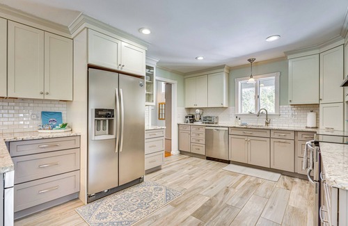 Gather loved ones and get ready for exciting year-round adventures at this impressive vacation rental in Ludlow, VT. The location is private but close to skiing, hiking, golf, lakes, downtown, and Buttermilk Falls. With a spacious interior and thoughtful details throughout, this 3-bedroom, 3.5-bath home offers all the amenities needed for a relaxing stay, including stunning views that guests appreciate!