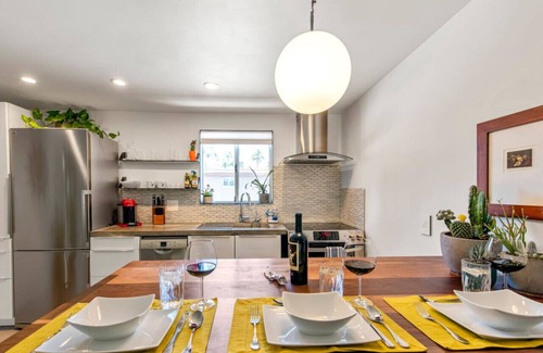 Please do NOT water our plants. We know the soil may feel dry… This is a desert climate, and the plants are accustomed to a different amount of water than other climates. Our cleaning team takes great pride in keeping them healthy. Overwatering – even if the soil feels dry – will harm them. If your stay is 7 days or longer, please check with our host about watering :)