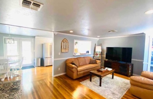 Relax with the whole family at this peaceful place to stay. Located in Medina, TX steps away from the Medina River (note at this time river is deemed not safe due to drought). House sleeps 5 guests in 2 private bedrooms and sunroom. Full kitchen, Bathroom, Living Room, Dining and Coffee Bar, Sitting Area. Fenced in backyard with outdoor dining and grill. Bring up to 2 furry friends for a pet fee. Great for family and bikers! Conveniently located right off Hwy 16. WIFI. Short drive to Bandera, TX. and the Cowboy Capital of the World! We hope to see you!