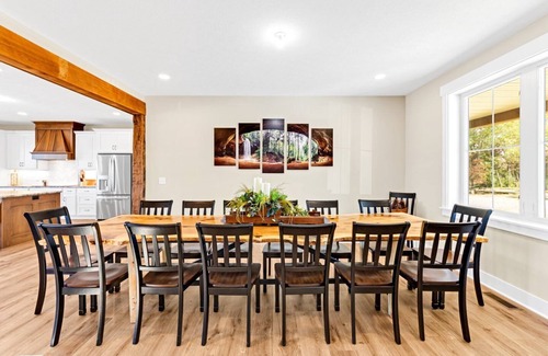 The comforts of home are awaiting you! All the main bedrooms have King sized beds with your personal bath. There is a special historical room to give you some history of the area, a room just for youngsters, and a queen suite ADA friendly. There are two fully equipped kitchens for your culinary expertise, or you can take a short drive to one of many eateries around the area. AWD/4WD recommended in all seasons.