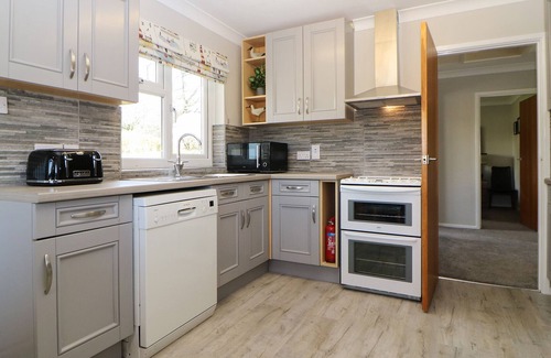 Amenities: Electric central heating with woodburning stove. Electric oven and hob, microwave, dishwasher, fridge/freezer, washing machine, Smart TV and WiFi. Fuel and power inc. in rent. Bed linen and towels inc. in rent. Highchair and travel cot available. Off-road parking on driveway for 2 cars. Large enclosed wrap-around garden with lawn to front and back, and paved patio with seating. Two well-behaved pets welcome at a cost of £20 per pet, per week. Sorry, no smoking. Shop and pub within 0.2 miles