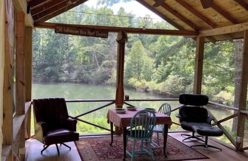 In the mountains and the woods, nature all around, wake to birds chirping, dragonflies on the cattails at water's edge and hear frogs croaking at night. Gorgeous sunsets over water from screened porch. Area of unrivaled bio-diversity. Second highest ozone layer in the World. Great place for forest bathing.