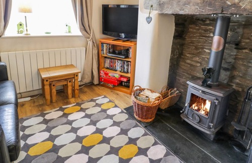 Amenities: Electric heating with multi-fuel stove. Electric oven and hob, microwave, fridge, washer/dryer, TV with FreeSat, combi DVD/CD, iPod dock with radio, WiFi, selection of books, games and DVDs. Power and starter pack for stove inc. in rent. Bed linen and towels inc. in rent. Roadside parking available 50 yards from property (can park outside cottage to unload only). Lockable bike storage. Small rear gravelled area with bistro table and chairs. Two well-behaved dogs welcome (please bring own dog beds & towels). Sorry, no smoking. Village shop and pub 2 mins walk. Note: Rear gravelled area is enclosed but not completely secure. Note: Property is opposite a small, quiet local authority storage yard, which is well kept with views extending towards the Moelwyn Mountains. Note: Shower is over a bath, however due to hot water tank capacity showers are only advisable. Note: Adults only, no children allowed (inc. infants).