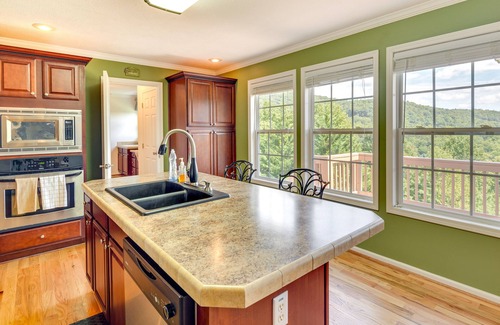 Nestled in the rolling verdant landscapes of North Carolina’s Blue Ridge Mountains, this Hendersonville vacation rental is the perfect place to relax and reconnect with nature. You’ll find a deck with sweeping mountain views and a spacious interior with plenty of entertainment at this 3-bedroom, 3-bathroom home, which sits just a quick drive away from Asheville’s attractions, beautiful parks and preserves, and tons of local vineyards just waiting to be sampled.