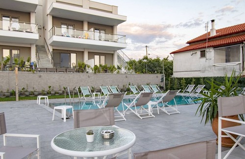 Heraclea Luxury Suites are brand new suites, with panoramic sea view, located just 200 meters from the beach. All units have free Wi-Fi access, air conditioning and free parking. Each unit has an equipped kitchen, Smart TV, fully equipped kitchen with possibility to prepare meals, bathroom with shower, terrace and garden furniture. In the complex there is a shared swimming pool and a bar where you can enjoy refreshing drinks for an extra charge. Macedonia Airport is 31 kilometers from the accommodation and there is transportation to and from the airport for an extra charge.
