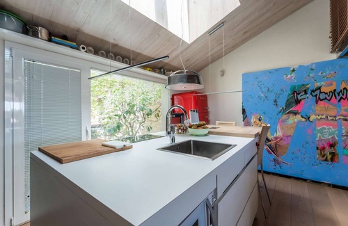 HHBCN Beach House Castelldefels #4 is a peaceful, comfortable but modest house right at the beach. This house facilitates a comfortable stay for a couple who likes to have a base close by the beach, restaurants and bars and Barcelona. There's free private parking in front of the property. Air conditioning you’ll find in the living room and fans in the bedroom.