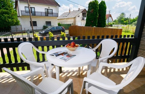Balatonkeresztúr 18 km from Keszthely: Semi-detached house "Hibiscus". In the resort, 600 m from the lake, 950 m from the beach, 150 m from the canal. Private: garden 300 m2, lawn for sunbathing. Outdoor shower. In the house: WiFi. Available: bicycles (4). Shop 100 m, grocery, restaurant 300 m, outdoor swimming pool 600 m. Sports harbour 150 m.