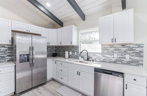 The kitchen is fully stocked with a Keurig Coffee Machine and all the necessities needed for you to relax and enjoy your stay. The home is located on a 1-acre lot in an Equestrian community and is away from the hustle and bustle but within a few minutes drive from the beach, entertainment, shopping, restaurants, grocery stores and so much more. Perfect for riding your horses, ATVs and plenty of room for parking your RVs, Horse Trailers, Boats Etc. The home has a beautiful wraparound porch and windows surrounding the home which bring in so much natural light.
